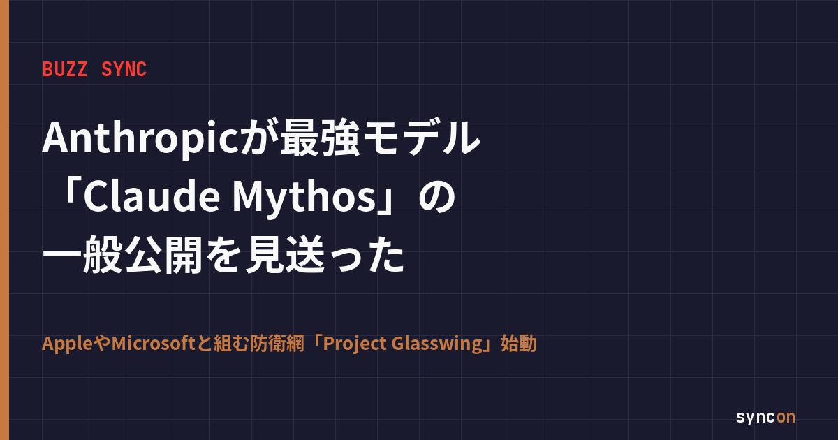 余談だが、AnthropicがOpus 4.6の「次」をOpusではなく「Capybara」という別ティアで切り出したのも興味深い。これは「もう従来のスケール感では説明できないモデルが出てきた」という宣言でもある。SYNCONとしては、Mythosの一般提供が始まる/始まらないにかかわらず、このCapybaraティアの登場こそが2026年のAI業界を象徴するイベントになると見ている。