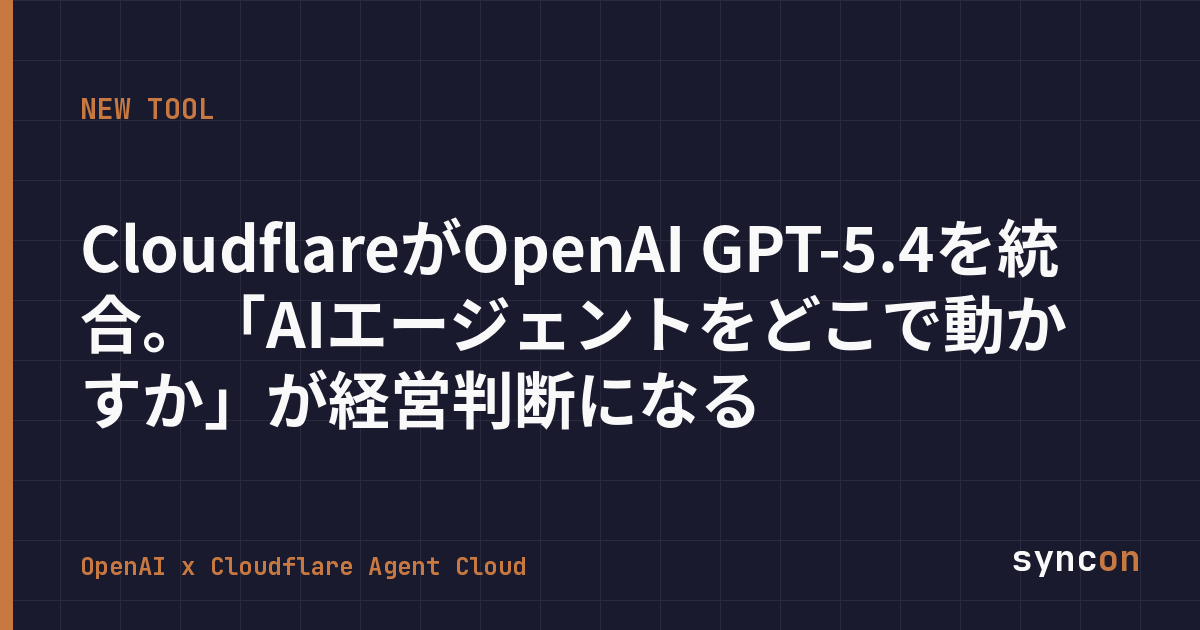 2026年4月13日、OpenAIはCloudflare Agent CloudにGPT-5.4とCodexを統合すると発表した。これにより、Cloudflareのエッジネットワーク上で、企業が自前のAIエージェントを構築・運用できるようになる。