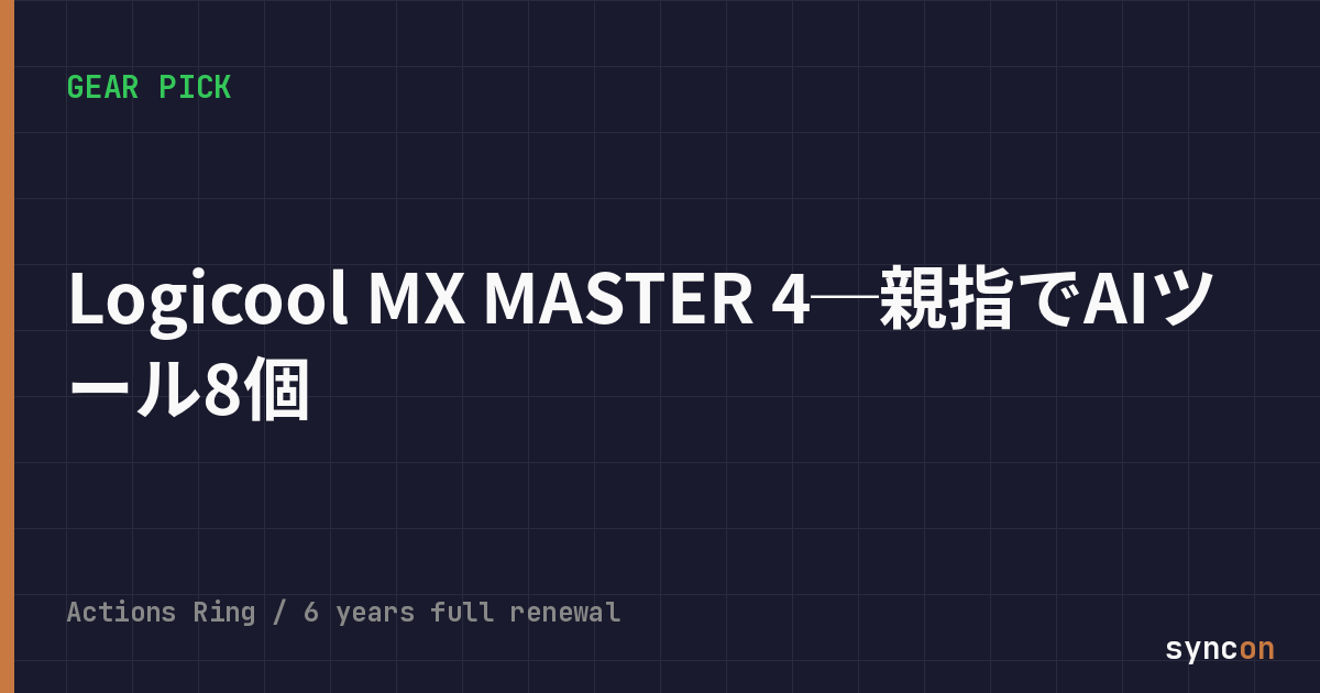 MX MASTER 3/3Sを現役で使っている方は、「触覚フィードバック」と「Actions Ring」が自分の業務スタイルに効くかで判断していい。効くと感じたなら、6年分の技術進化を手に入れる価値はある。