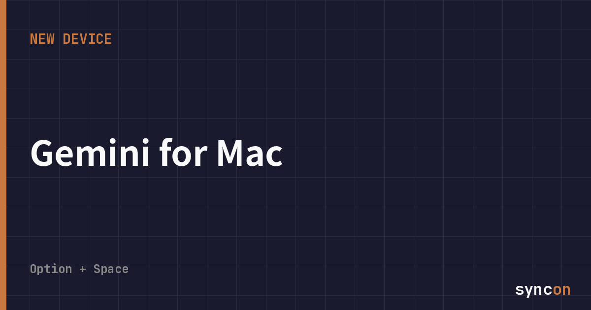 新しいGeminiアプリの最大の特徴は、ショートカットキー「Option + Space」を押すだけで、画面のどこからでも浮遊するチャットウィンドウが起動すること。アプリを切り替える必要がなく、いま見ている画面の上にAIが重なる形で現れる。