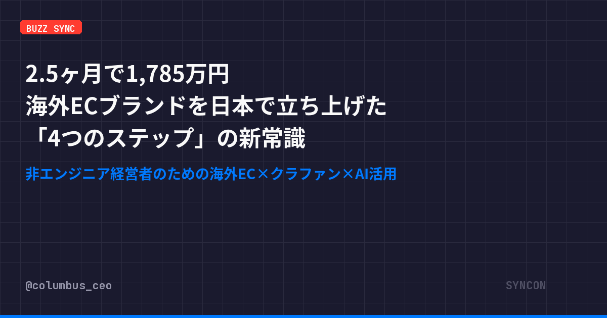 海外EC、クラファン、AI活用──これらはすべて、SYNCONが「翻訳」し続けているテーマの交差点にある。世界基準のビジネスモデルを、あなたの現場に同期するための第一歩として、のじ氏の投稿は必読だ。