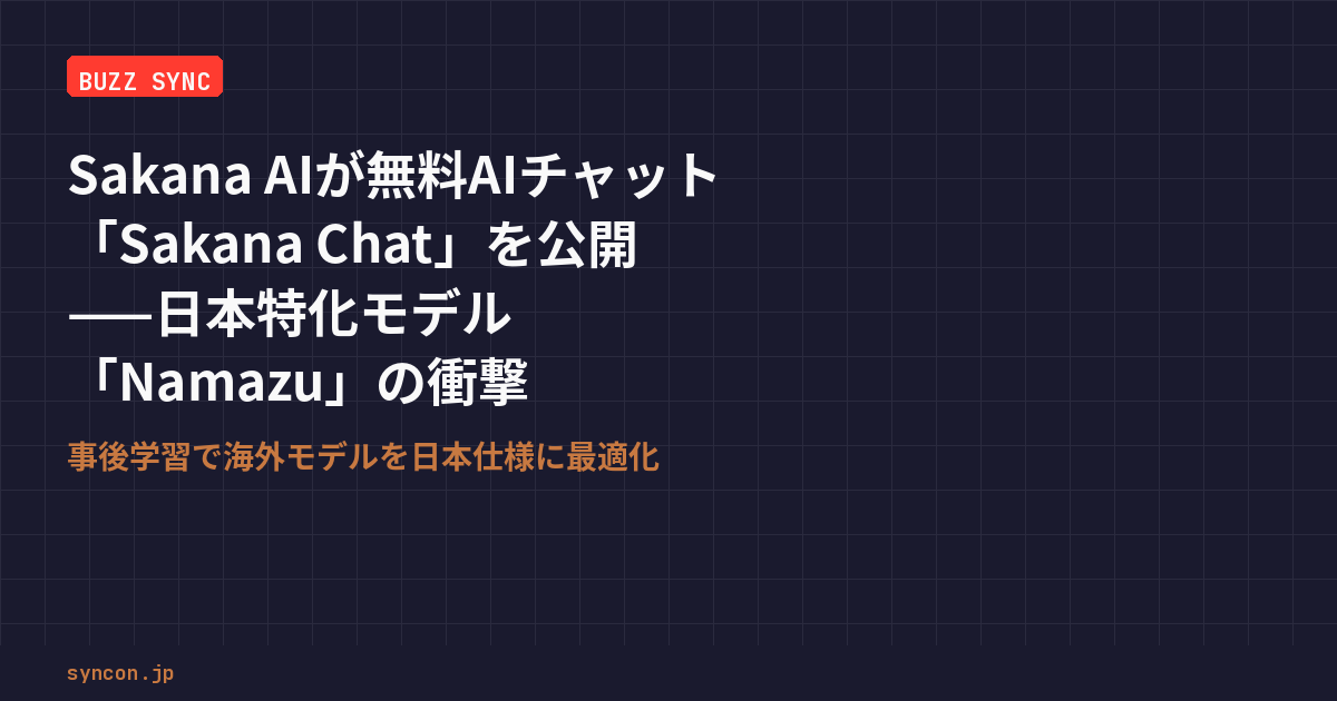 Sakana AIが、日本仕様に特化した独自AIモデル「Namazu(なまず)」を搭載した無料チャットサービス「Sakana Chat」を2026年3月24日に一般公開しました。公開直後からX上で156万回以上の表示を記録し、大きな反響を呼んでいます。