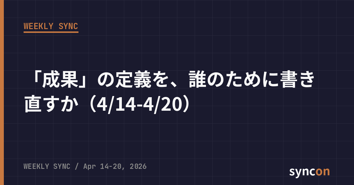 WEEKLY SYNC(4/14-4/20):「成果」の定義を、誰のために書き直すか